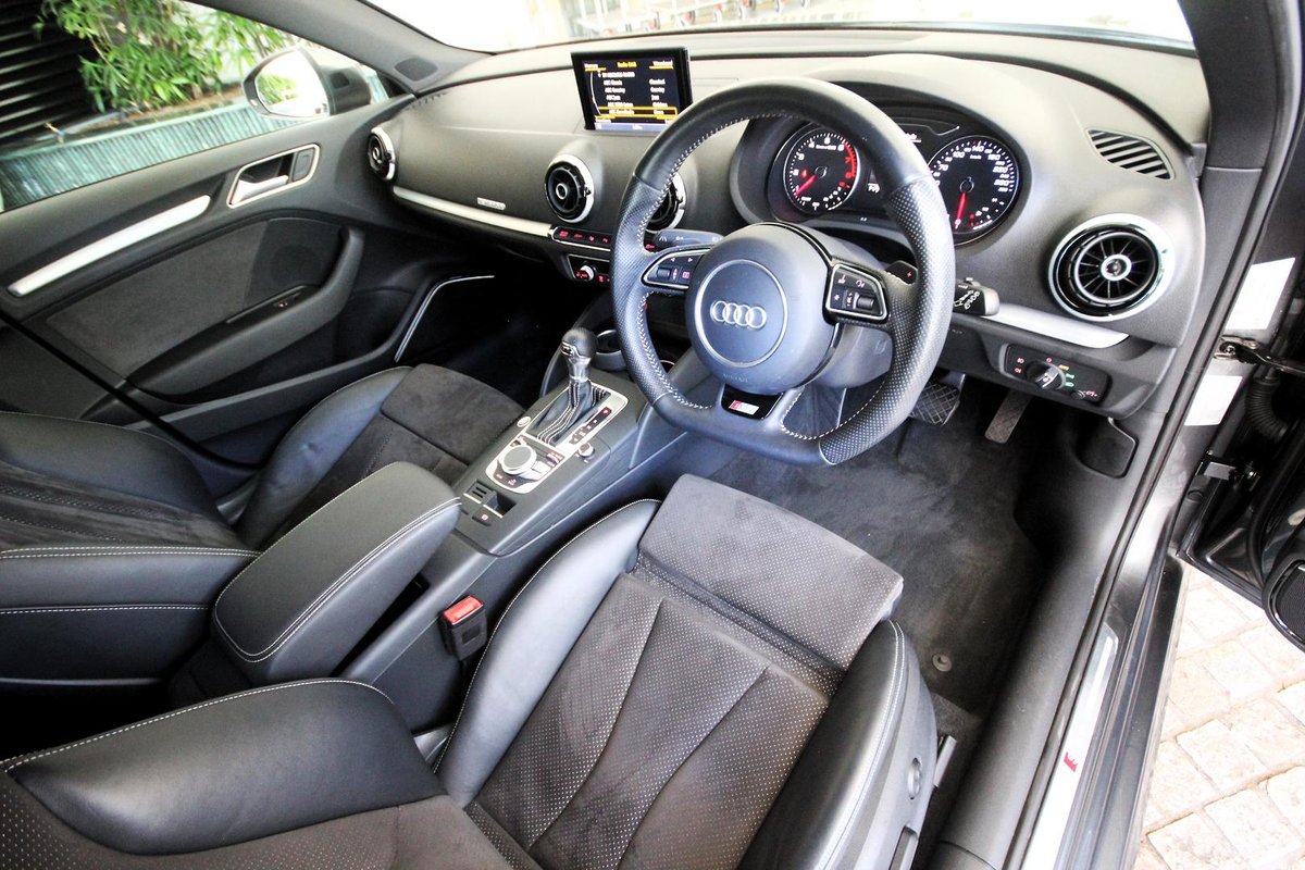 *** 19' SPEILBERG WHEELS, FULL S - LINE PACKAGE, ASSISTANCE PACKAGE, COMFORT PACKAGE,TECHNIK PACKAGE & BEAUTIFUL IN METTALIC PEARL GREY *** This Audi A3 Quattro Hatchback comes with Full Service History and presents very well both inside and out. This sporty hatch has a powerful 1.8l Turbo Charged Engine that combined with its 6 Speed S tronic transmission offers excellent power delivery without breaking the fuel budget. Our A3 Ambition is loaded with factory options and features that make this car special like: 19' Alloy Wheels (with 3 Brand New Tyres), Keyless Entry and Start, Full S Line Package (Body Kit, Sports Suspension, Flat Bottom Sports Steering Wheel, Sport Seats, Black Roof Lining and more), Blind Spot Assist, Active Lane Assist, Adaptive Cruise Control, Electric Heated Seats, Dual Zone Climate Controlled Air Con, Bang and Olufsen Surround Sound System Upgrade, Digital Radio, Paddle Shift, Satellite Navigation, Bluetooth with Audio Streaming, Reverse Parking Camera, Front and Rear Parking Sensors, Bi Xenon Headlights with Signature LED Driving Lights, Park Assist and the list goes on. In Metallic Daytona Pearl Grey - this car shines and comes to life in the sunlight; and with less than 100.000km's on the clock - This sporty luxury performance hatchback offers years of fun driving for its new owner. Dealer Statutory Warranty is applicable to this vehicle, all trade in vehicles are welcome and we have finance consultants on Stand by ready to tailor a finance package to suit your budget. Viewing of this vehicle is by Appointment Only, so please call to learn more about this rare and beautiful Audi A3 Quattro S Line hatch.